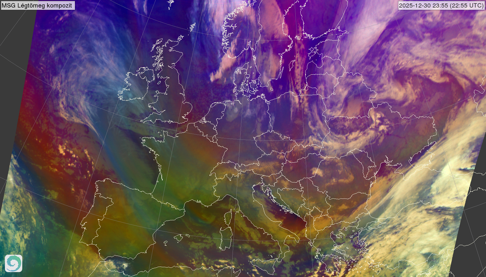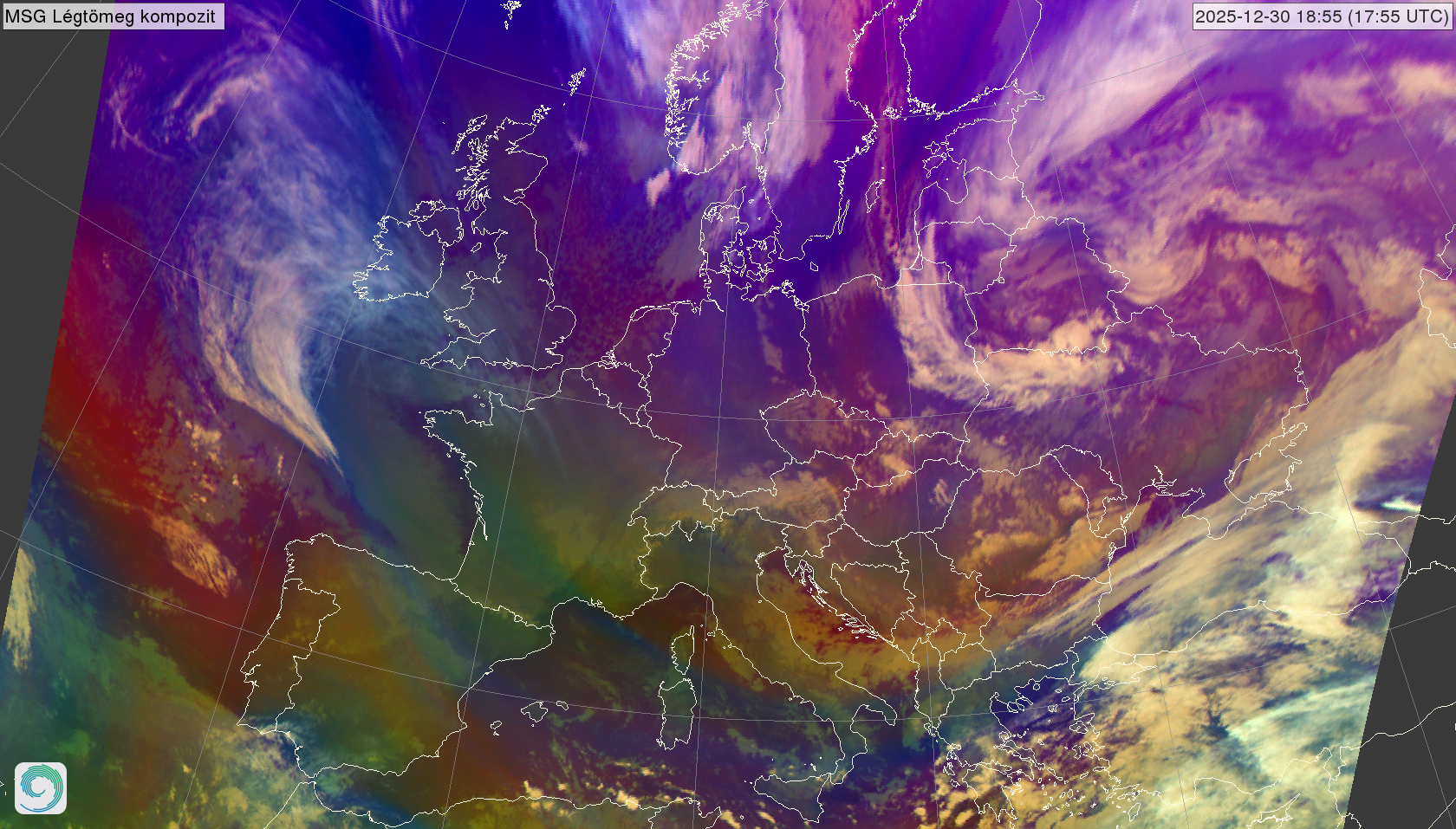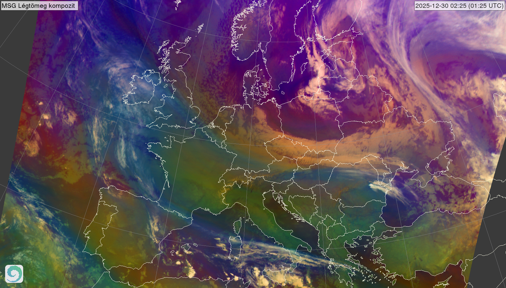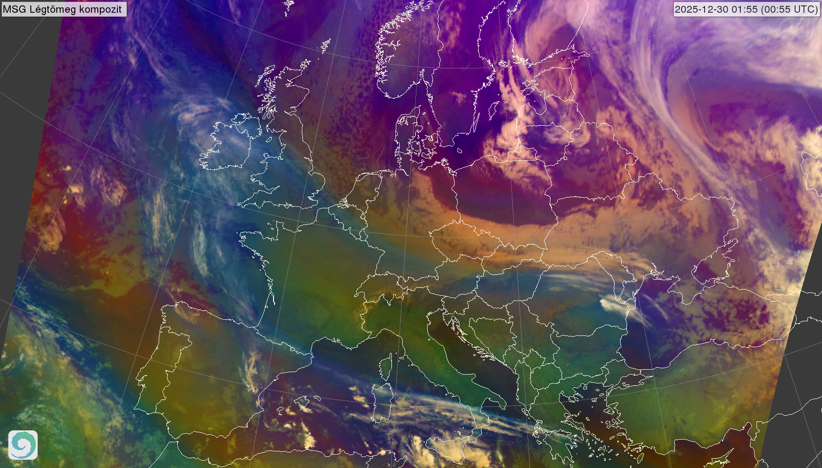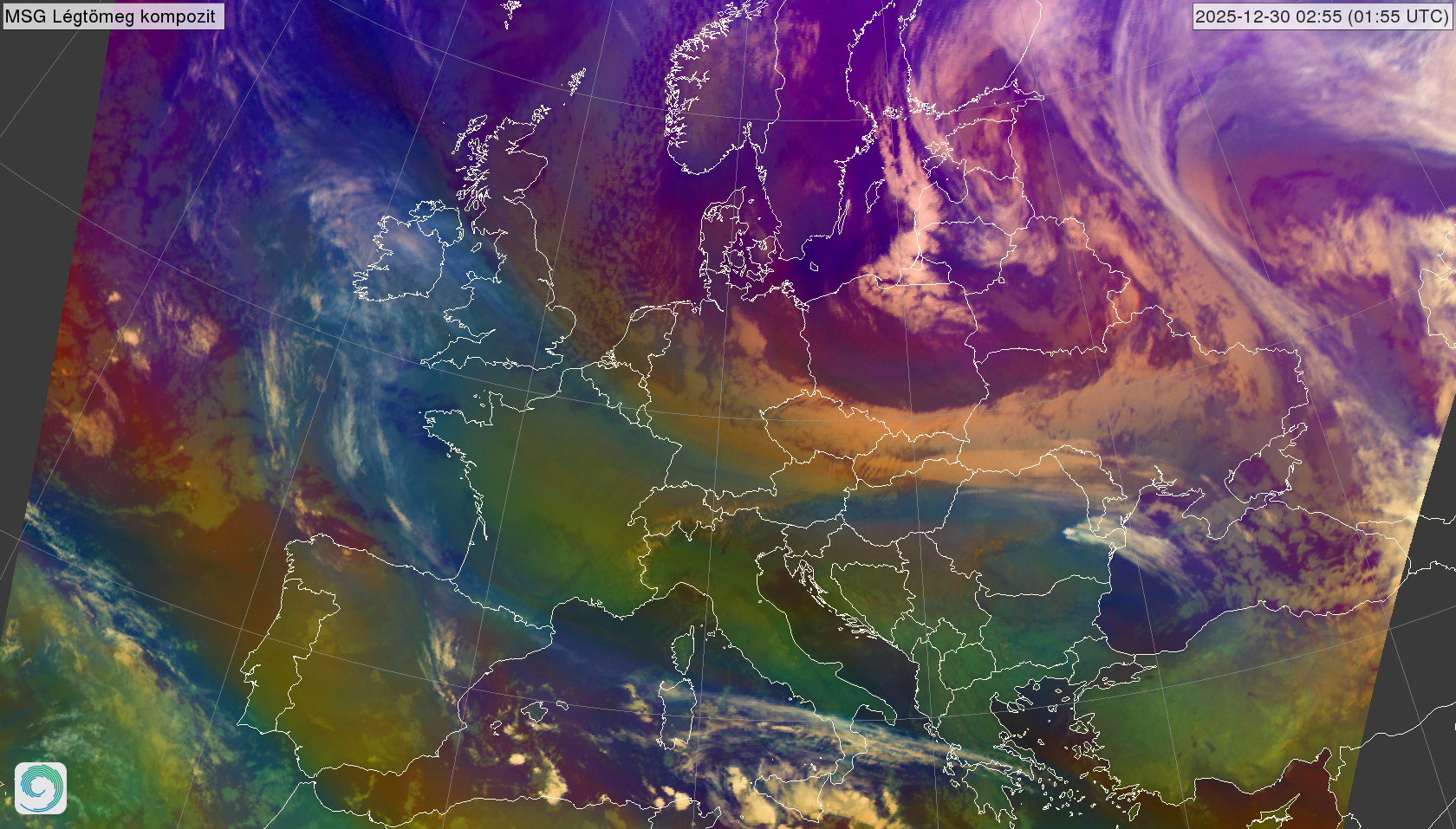 satellite_MSG-AirmassRGB-20251230_0055.png 2025-12-30 01:01 2.0M MSG Légtömeg kompozit kép