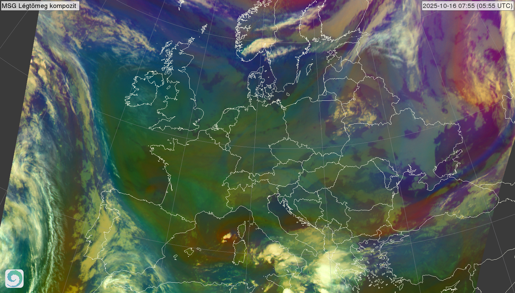 satellite_MSG-AirmassRGB-20251016_0555.png 2025-10-16 06:01 2.0M MSG Légtömeg kompozit kép