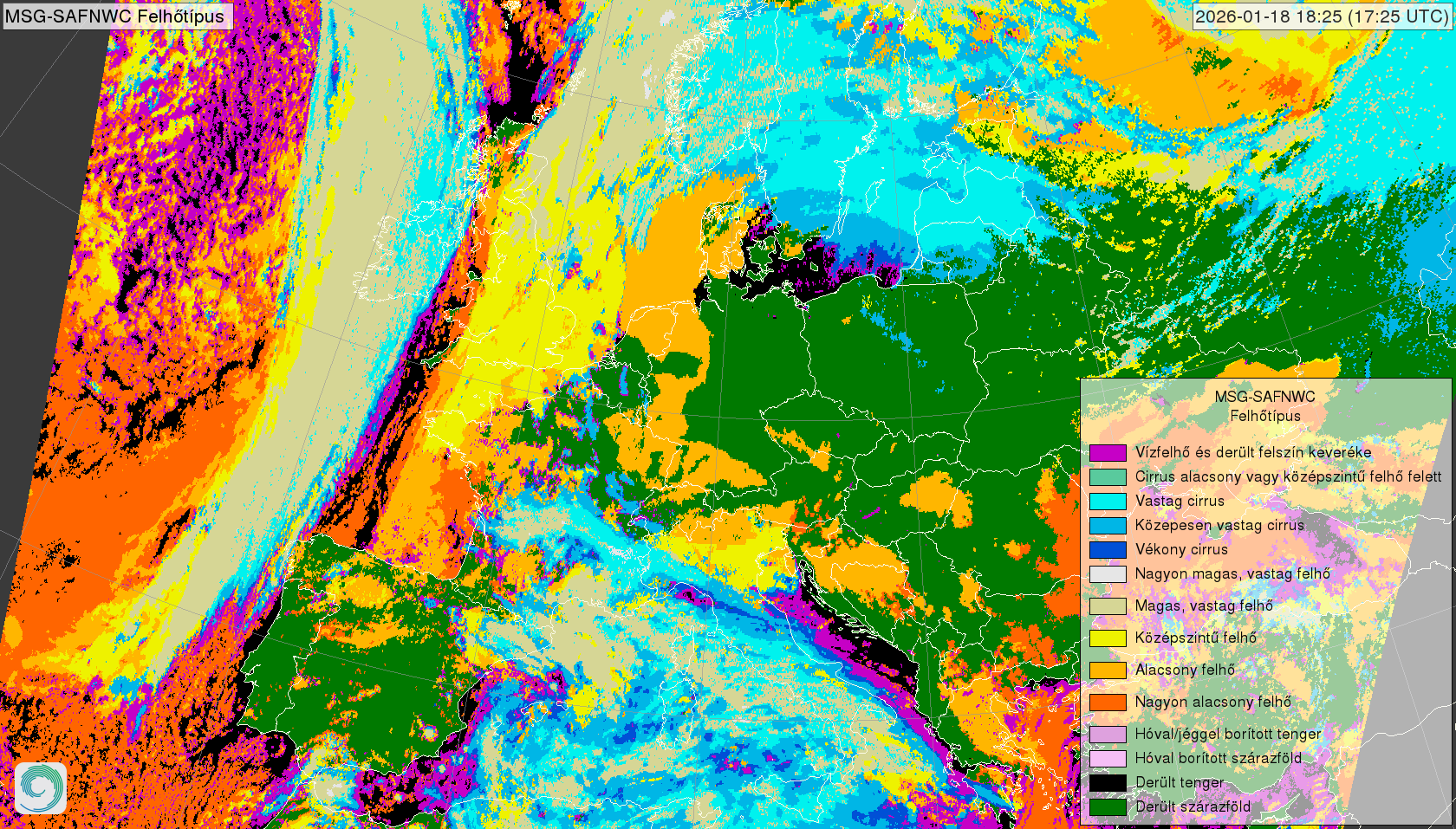 satellite_MSG-CloudType-20260118_1810.png 2026-01-18 18:19 504K MSG NWCSAF Felhõtípus